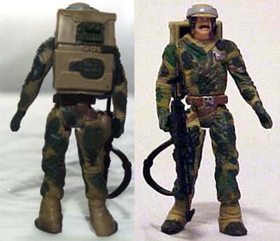This was a very easy custom. Taking an Endor Rebel Soldier, I added more camouflage to the jumpsuit, painted details on the backpack and belt buckle, and altered the rank insignia. I also painted a mustache on him.