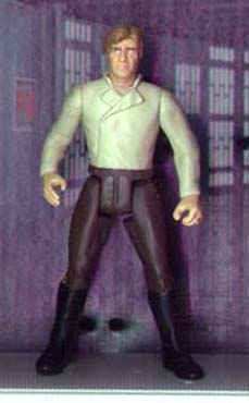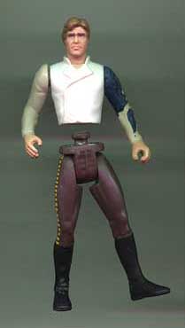 Another effort in my eradication of buff figures (see also my "Not Too Buff" Stormtrooper, Non-Buff Greedo, Non-Buff Lando, Non-Buff Boba Fett, and Non-Buff Rebel Fleet Trooper II), this Carbonite Han Solo is made from Han in Carbonite legs, regular Han arms, and the head and chest piece (so he has the right shirt) from the Princess Leia Collection Han Bespin. I had to cut the Leia Collection Han body at the waist, and I had originally hoped to use the arms from that figure but they turned out to be too wimpy looking. I ended up cutting and filing down the regular Han arms (the left picture shows how much I had to file down the arms). I also repositioned the left arm and right leg. The waist does not turn.
