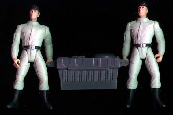 The base for both figures was obviously the AT-ST driver body with the head and gloves removed. For the scanner tech on the left I used the forearms from a regular POTF2 Han and the head from a Tarkin, with a hat added. The features on the Tarkin head were altered a bit by filing. This figure was also made a little shorter by cutting and removing a portion of the legs above the boots. The tech on the right has Rebel Fleet Trooper forearms and a Piett head. I had originally hoped to just paint the arms on the figures, but the difference between paint and plastic was too obvious, so I opted for painting all of the jumpsuit on each figure. The scanning case is from the Snowtrooper E-Web cannon.